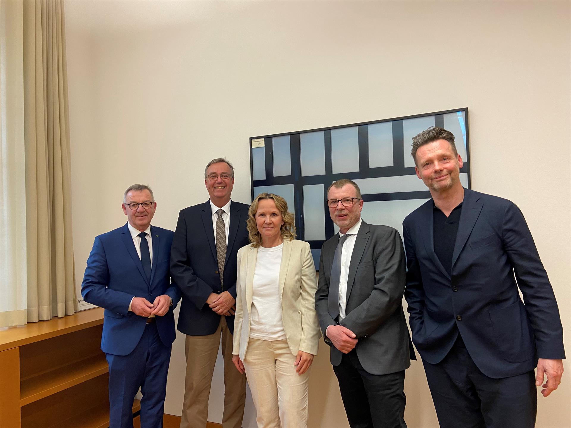 BU: v.l.n.r. Jürgen Mertz, ZVG-Präsident, Hajo Hinrichs, BdB-Präsident, Steffi Lemke, Bundesministerin für Umwelt, Naturschutz, nukleare Sicherheit und Verbraucherschutz, Matthias Lösch, BGL-Vizepräsident, Prof. Stephan Lenzen, bdla-Präsident